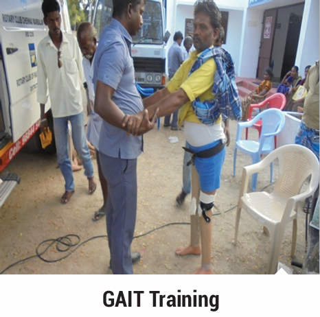 Training given to users of artificial limbs to walk with their new limb. This vital training helps the beneficiary use the appliance properly and move confidently.